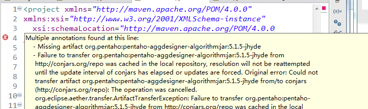 用maven引入hive的jar包,pom.xml文件显示如下错误信息: