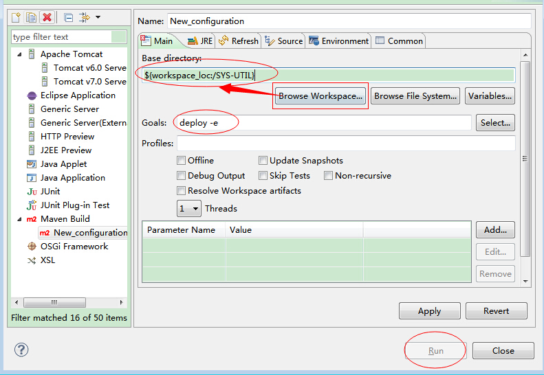 3) 右击项目,依次执行:Run As --> Run Configurations ---> Maven Build --->New _Configuration(双击Maven Build可生成) --> Browse Workspace 选中项目,