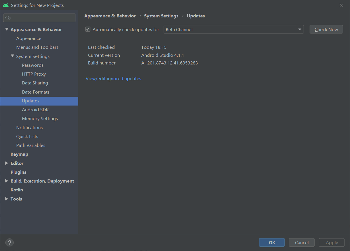 在改错的时候一不小心将Android studio 升级到 4.1.1