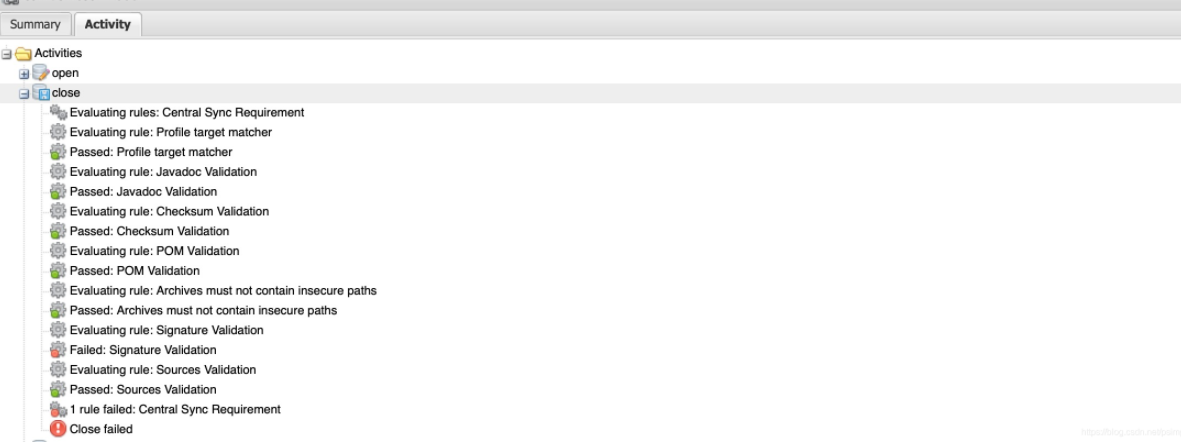 点击close后,会进行校验,如果失败的话,会有提示,成功的话,release按钮会激活。如果某一项校验失败,会变成红颜色,点击他会显示具体的错误信息。