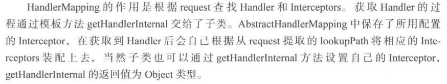 作用是根据request找到相应处理器Handler和Interceptors,HandlerMapping接口里只有一个方法: