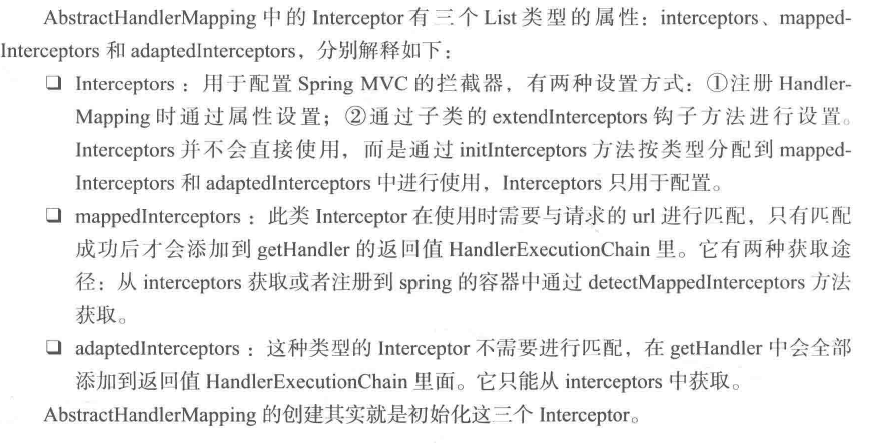 //初始化Interceptor,具体内容其实是将Interceptors属性里所包含的对象按类型添加到mappedInterceptors或者adaptedInterceptors