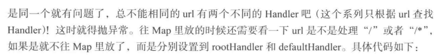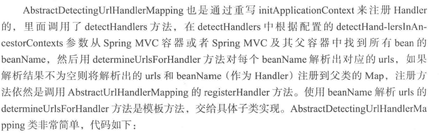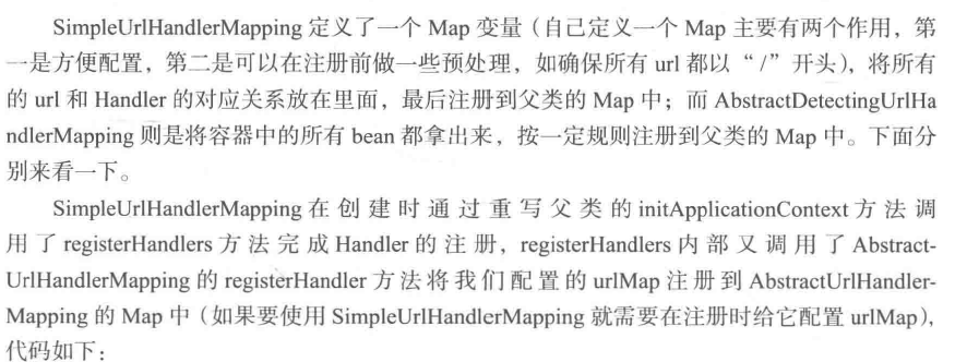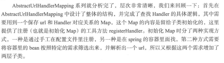 AbstractUrlHandlerMapping系列都继承自AbstractUrlHandlerMapping;通过url来进行匹配的。大致原理是将url与对应的Handler保存在一个map中,在getHandlerInternal方法中使用url从map中获取Handler。AbstractUrlHandlerMapping中实现了具体用url从map中获取Handler的过程,而map的初始化则交给了具体的子孙类去完成。
