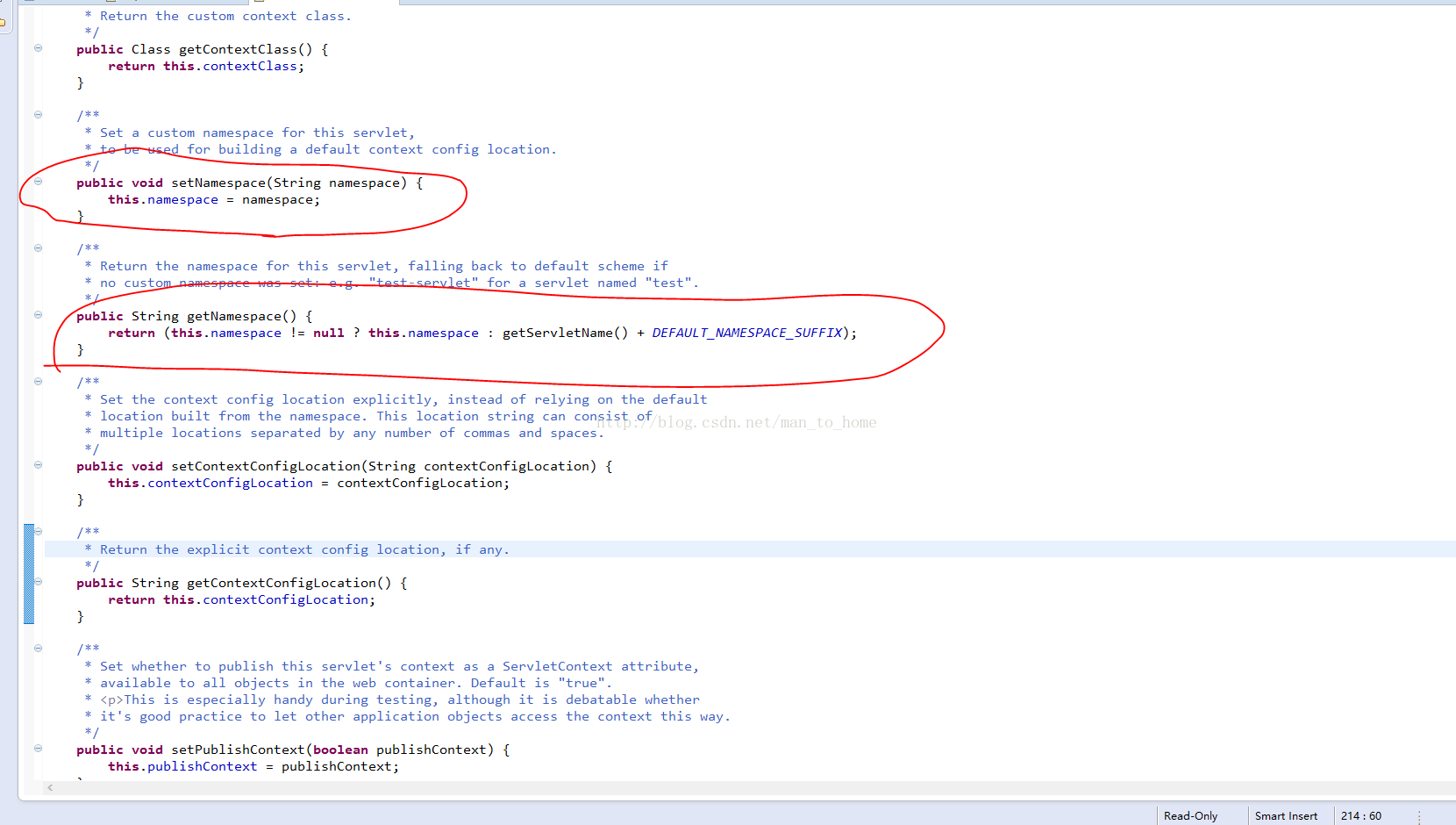 2.更改默认的命名空间之后,查看DispatcherServlet源码,DispatcherServlet继承了FrameworkServlet类,如图