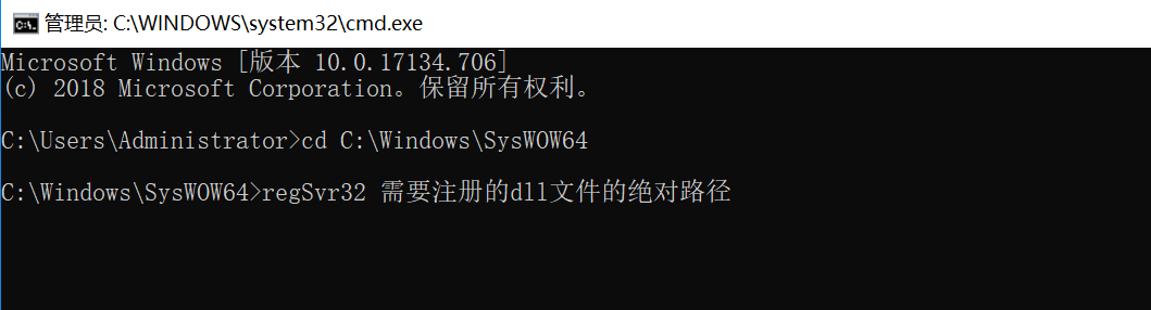 2、如果注册的dll文件是64位的,那么需要先进入到:C:WindowsSysWOW64 所在目录下,然后输入如下注册信息: