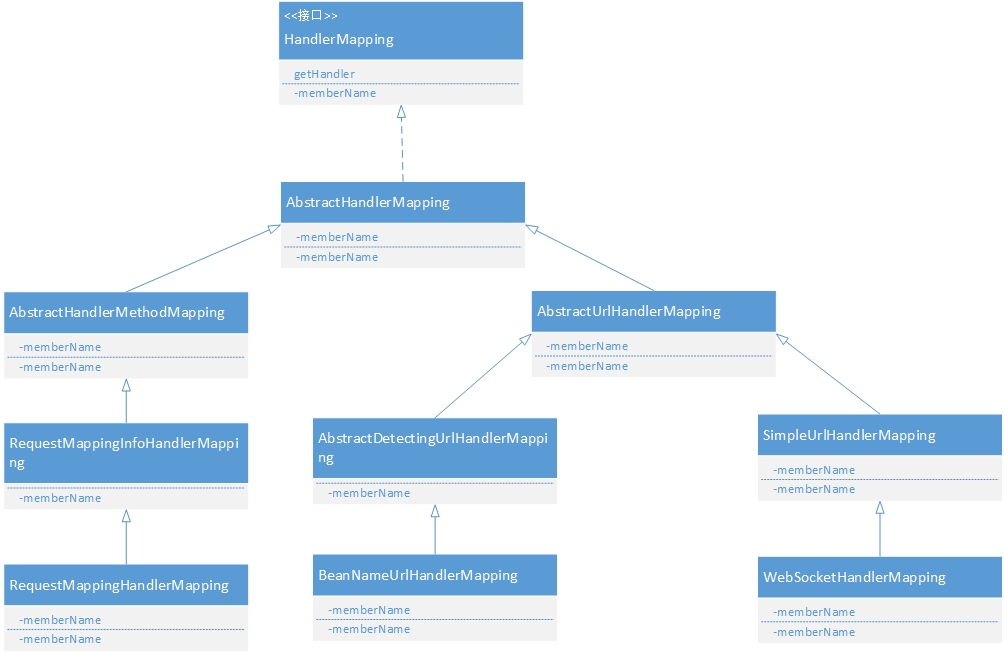 从api可以看到,实现HandlerMapping接口的还挺多的,大部分的几个mapping都能在org.springframework.web.servlet.handler这个包中找到.如果不知道这些都是在哪使用可以直接选中右键->references->project,查看哪些地方有引用到它,至于这几个类之间的关系,可以看api介绍.下图是我自己画的UML类图(UNL好久没看了,今天在回来的路上看xml的内容突然意识到好像这博客画的有问题,回来又重新画了一个,箭头方向反了,不知道这个对不对,也希望不要误人子弟).