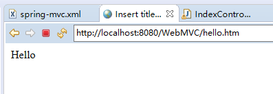 <bean class="org.springframework.web.servlet.handler.SimpleUrlHandlerMapping"> <property name="mappings"> <props> <prop key="/hello.htm">helloController</prop> </props> </property> </bean> <bean id="helloController" class="com.cyw.web.controller.HelloController" />