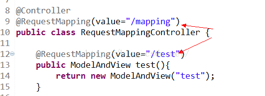 对应的路径就是IP:端口号/项目名/mapping/test,对应我们上节中的例子就是localhost:8080/mapping/test,这样的url就会映射到我们test的方法的处理