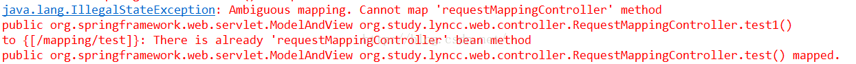 如果是这样的代码,方法test和test1的映射路径的URI都是/mapping/test,spring mvc启动的时候就会报错