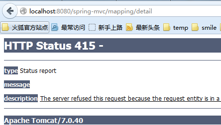 报错了,415错误,415错误是指 对于当前请求的方法和所请求的资源,请求中提交的实体并不是服务器中所支持的格式,因此请求被拒绝