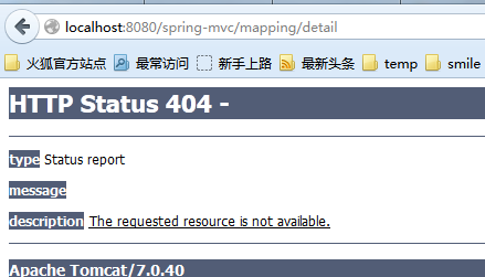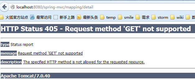 浏览器url是http://localhost:8080/spring-mvc/mapping/detail,因为浏览器默认是GET请求