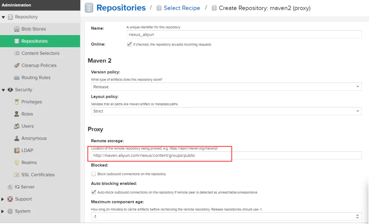 以上就是神勇花瓣最近收集整理的关于nexus3的配置阿里云代理仓库的全部内容,更多相关nexus3内容请搜索靠谱客的其他文章。