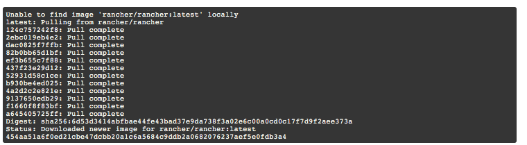 有了这些之后,我们就可以部署Rancher服务器了。在第一次启动容器时,Docker Engine会从Docker Hub中获取容器镜像,在启动容器之前先将其保存在本地。以后容器要启动时,就直接使用本地的镜像,这样速度会更快。