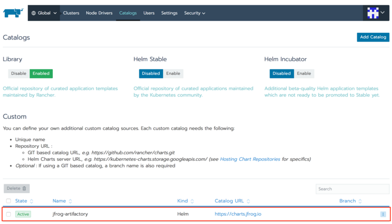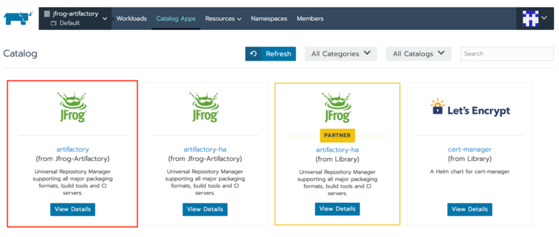 Rancher在其应用程序目录中附带了一个Helm charts库,不过为了满足Rancher用户对灵活性的要求,你还可以安装任何第三方的Helm仓库来部署这些应用程序到集群中。我们今天将使用JFrog仓库。