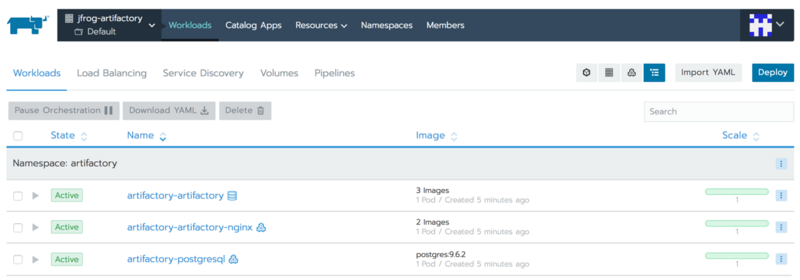 现在,当你点击Launch,Rancher就会把Artifactory部署到你的集群上。