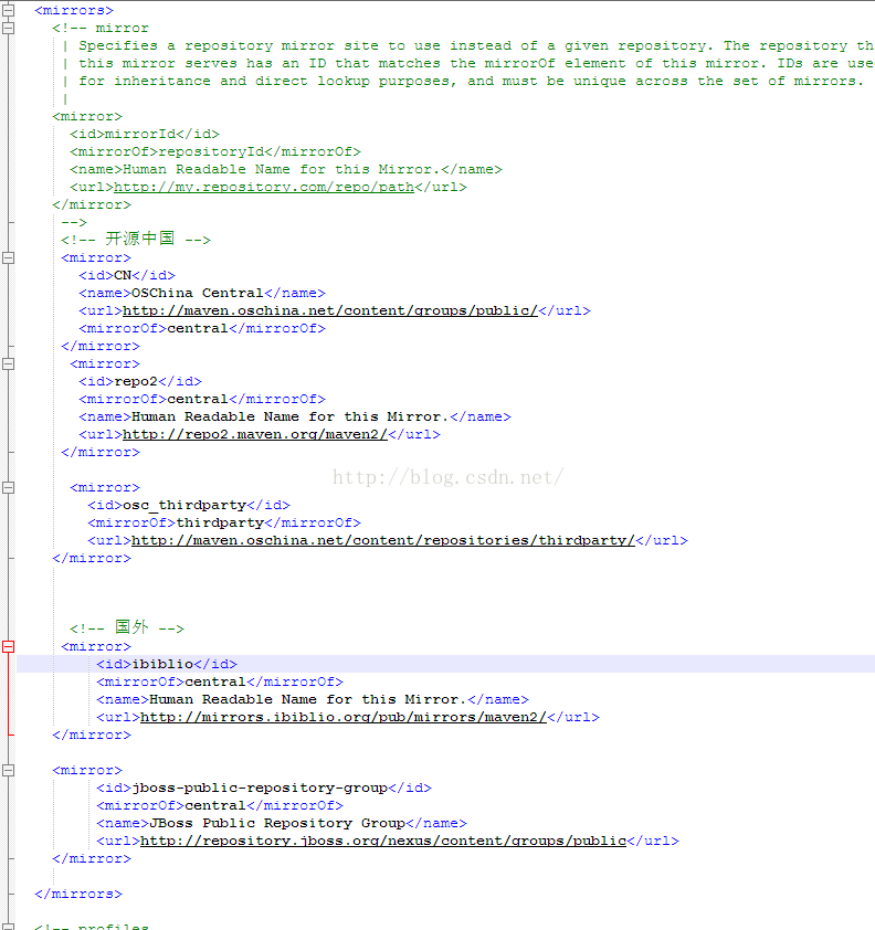 2 <mirrors> </mirrors> 中间添加开源中国的配置: