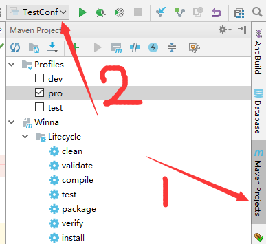 查看是否有maven,点击2所指的那个向下箭头,选择Edit Configurations,点击加号,添加一个maven,修改三个地方,箭头三所指的地方,必须要和文件的名字一样,配置好之后点击执行,三个文件都要执行一遍
