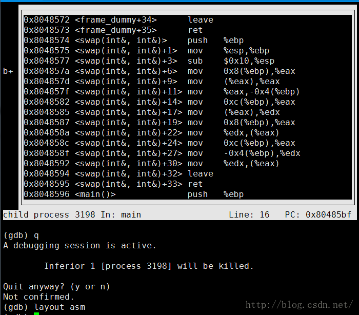 (gdb)layout asm