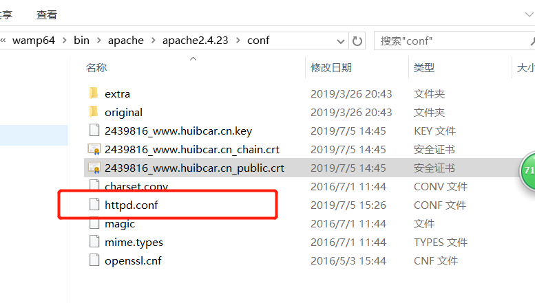 2、在C:wamp64binapacheapache2.4.23conf ,将上述三个文件放进去