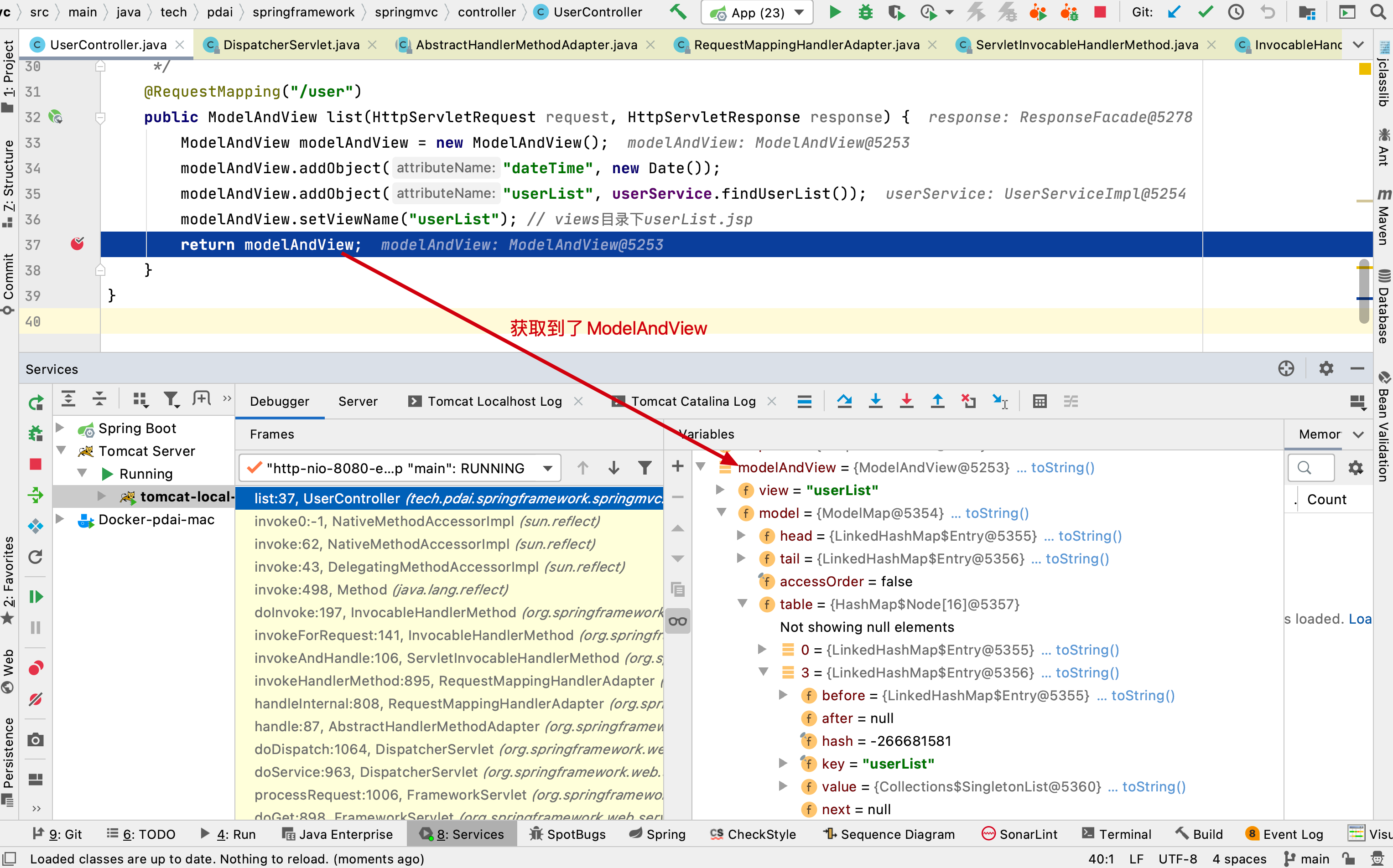 21:45:53.400 [http-nio-8080-exec-6] DEBUG org.springframework.web.servlet.mvc.method.annotation.RequestMappingHandlerMapping - Mapped to tech.pdai.springframework.springmvc.controller.UserController#list(HttpServletRequest, HttpServletResponse)