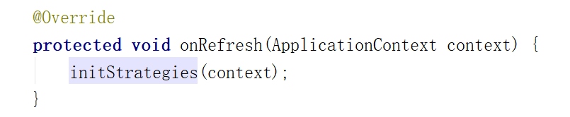 最后我们看一下前面没有讲的 onRefresh(wac); 而这个方法被DispatcherServlet覆写了 容器初始化完后执行