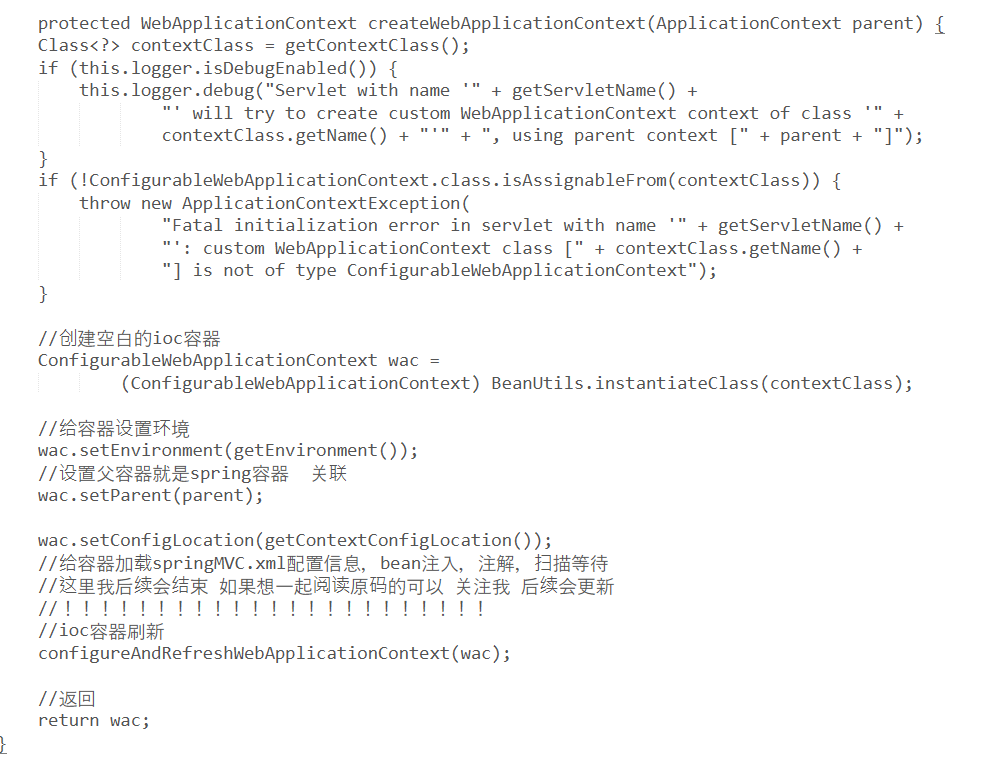 3)接下来调用 initWebApplicationContext() 完成容器的创建