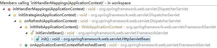 上面各个初始化方法的名称应该比较好理解,这里以常见的HandlerMapping为例来说明initHandlerMappings()实现,Mapping映射的作用就是为HTTP请求找到相应的Controller控制器,HandlerMappings完成对MVC中Controller的定义和配置,DispatcherServlet中HandlerMappings初始化过程源码如下: