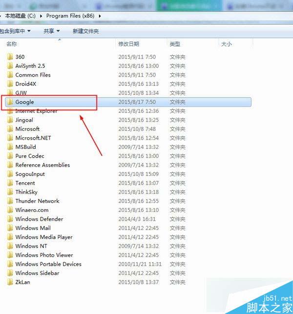 1、打开谷歌浏览器残余文件所在的位置文件夹,一般都在C盘的Program Files文件夹(64位系统的在Program FilesX86文件夹里);