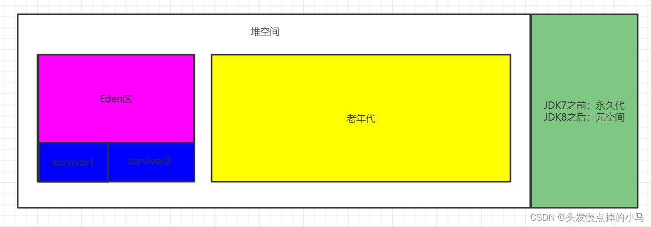 在JDK7之前:新生代+老年代+永久代