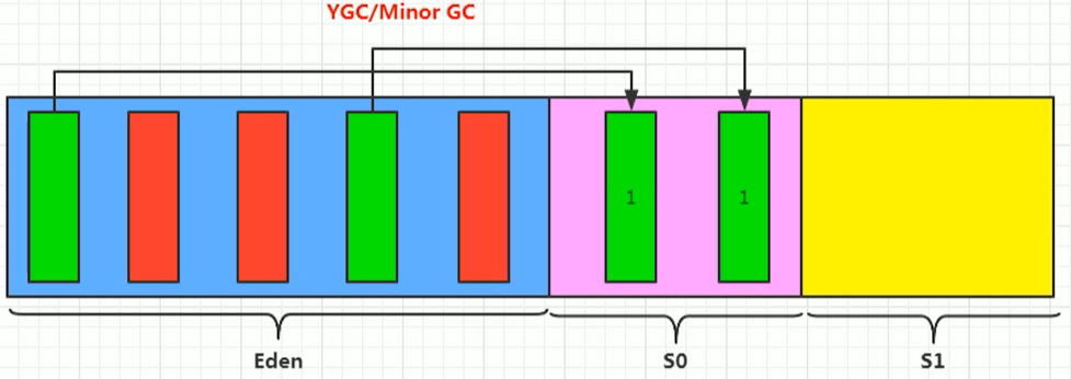MinorGC:YGC 只针对新生代的GC(当Eden区满的时候触发)