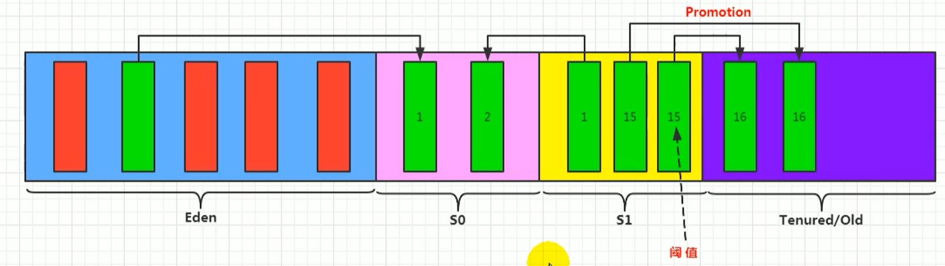 当age值到15时,就将对象从年轻代移动至老年代(如果Survivor区满了后,将会触发一些特殊的规则,也就是可能直接晋升老年代)