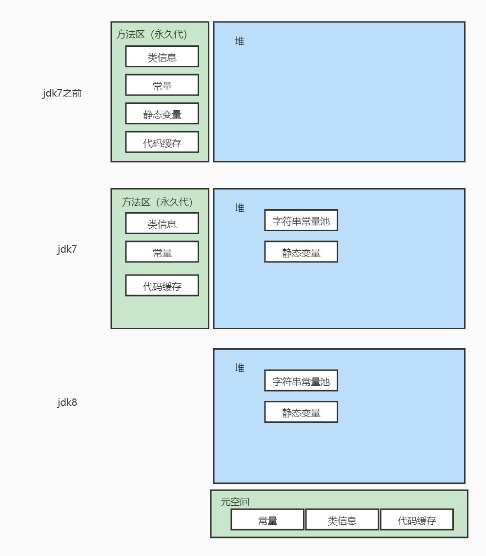 jdk1.7,将永久代中的字符串常量池和静态变量从永久代中移出,放到Java堆中;