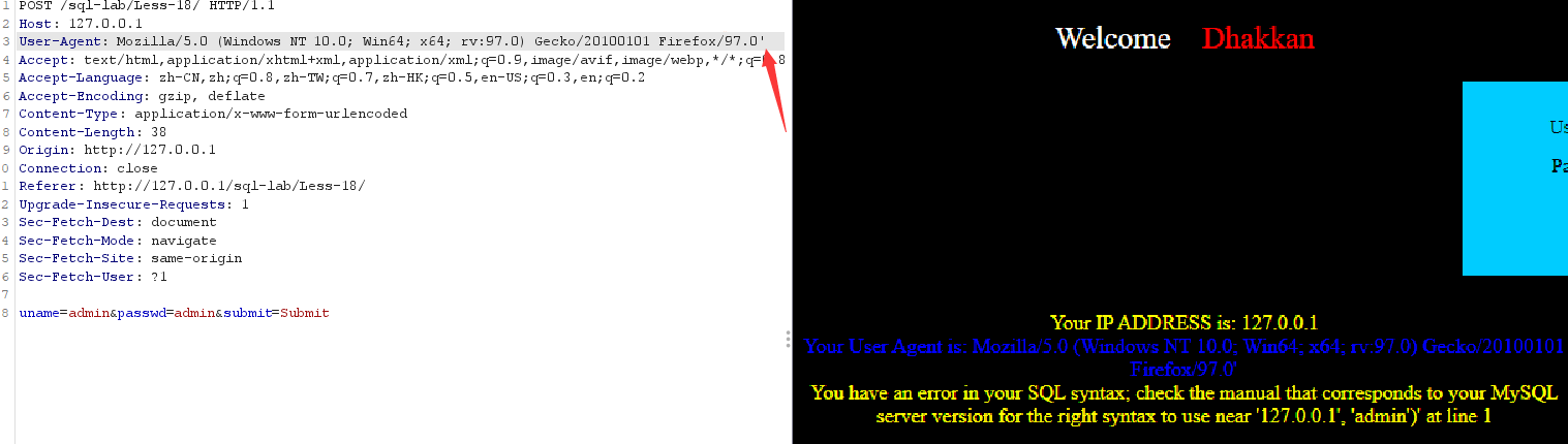 回显错误,说明是字符型注入