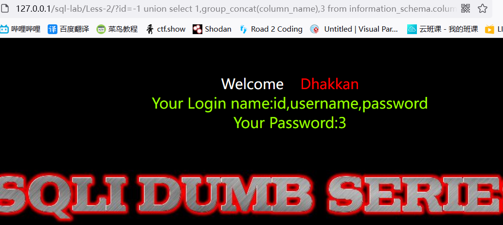 ?id=-1" union select 1,2,database() --+