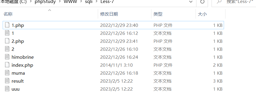 以上就是健忘过客最近收集整理的关于sqli-labs第七八关配置phpstudyLess-7(GET - Dump into outfile - String)Less-8(GET - Blind - Boolian Based - Single Quotes)的全部内容,更多相关sqli-labs第七八关配置phpstudyLess-7(GET内容请搜索靠谱客的其他文章。