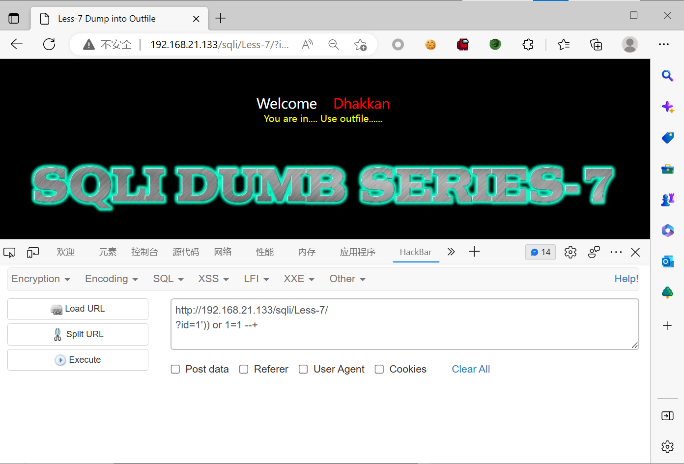 本关的标题是 dump into outfile,意思是本关我们利用文件导入的方式进行注入。