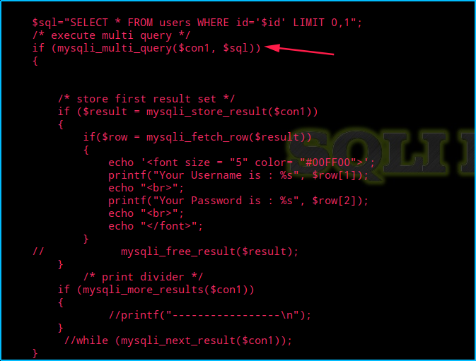 在源码中可以看到用了 mysqli_multi_query() 函数: