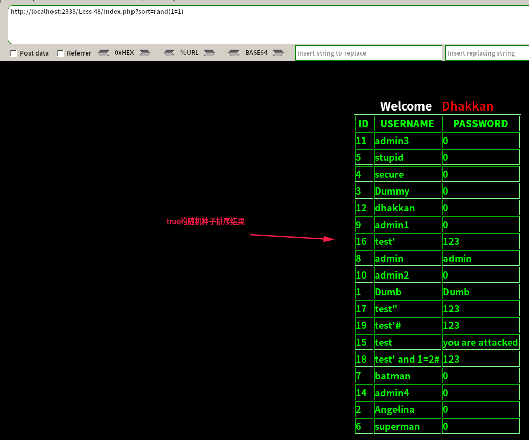 常规的布尔注入在这关并不被接受, 所以这里引入rand()函数: