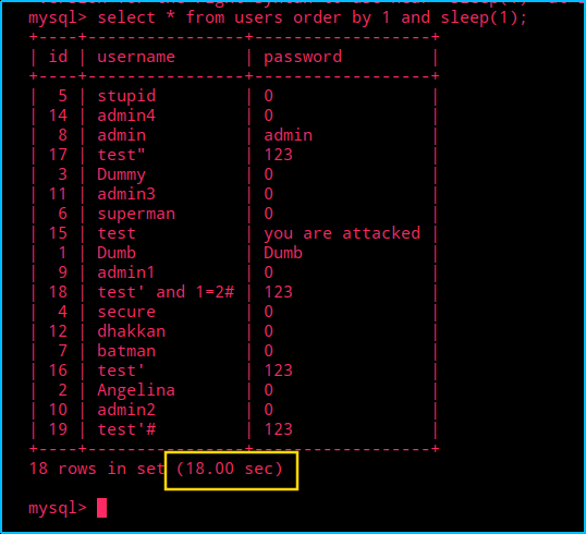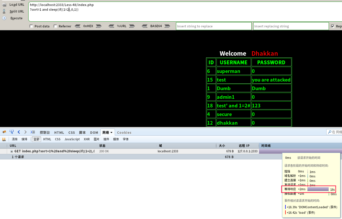 正因如此, 上一关的布尔rand()注入就用不了, 但是可以用延时注入: