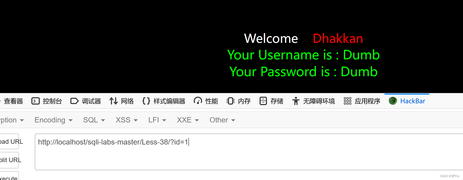 访问http://localhost/sqli-labs-master/Less-38/?id=1