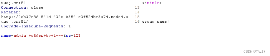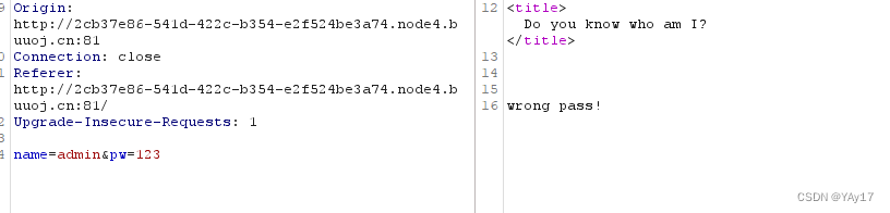 账号为admin的时候,密码不对的情况,回显为wrong pass!